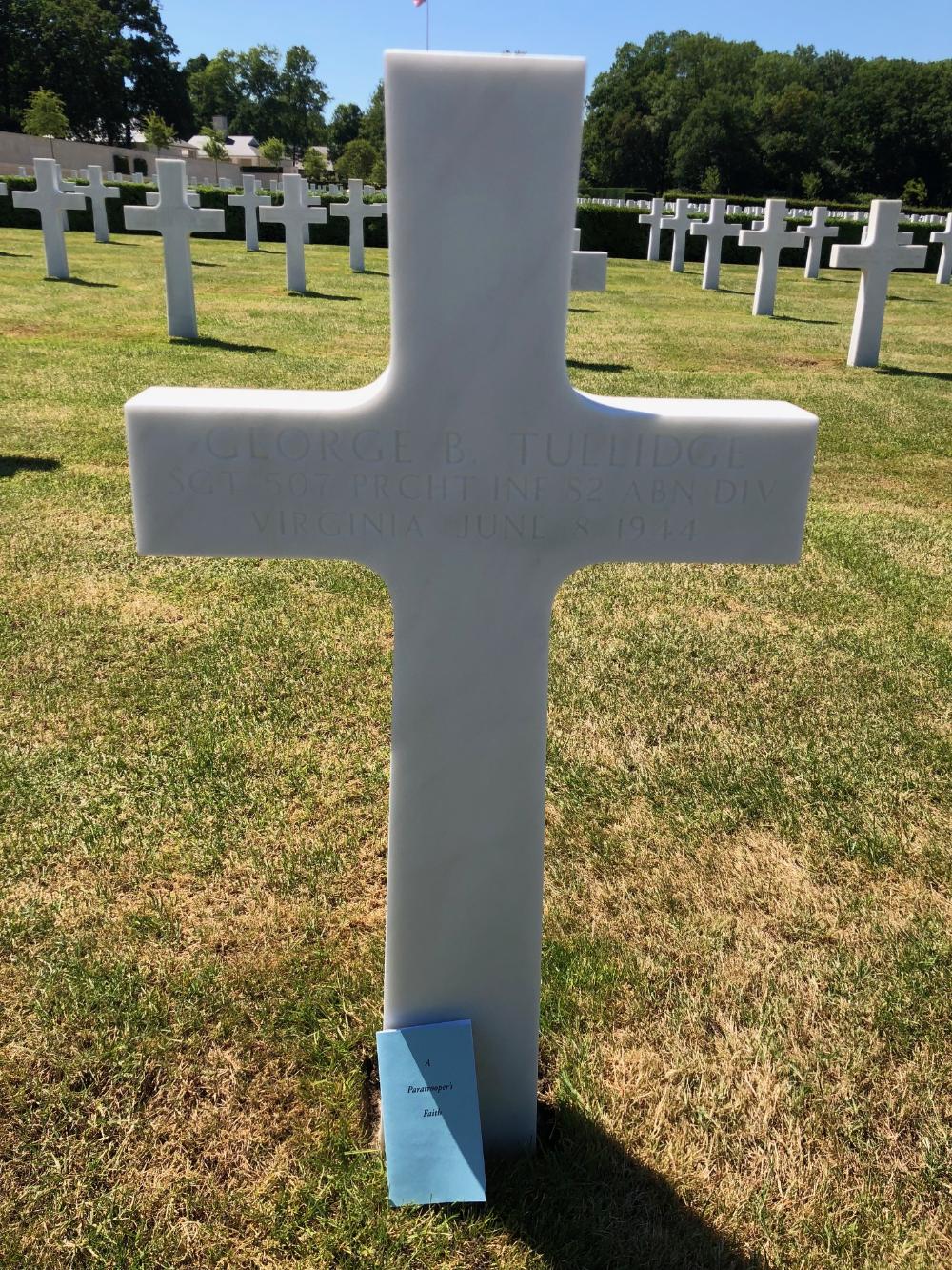 On June 5th 2018, the memorial D-Day reenactment jump at La Fiere was dedicated in George B. Tullidge III's honor. Anne Bell provided copies of A Paratrooper's Faith for all of those jumping that day. Below is a message we received from Mike Gibbons, one of the jumpers that day.