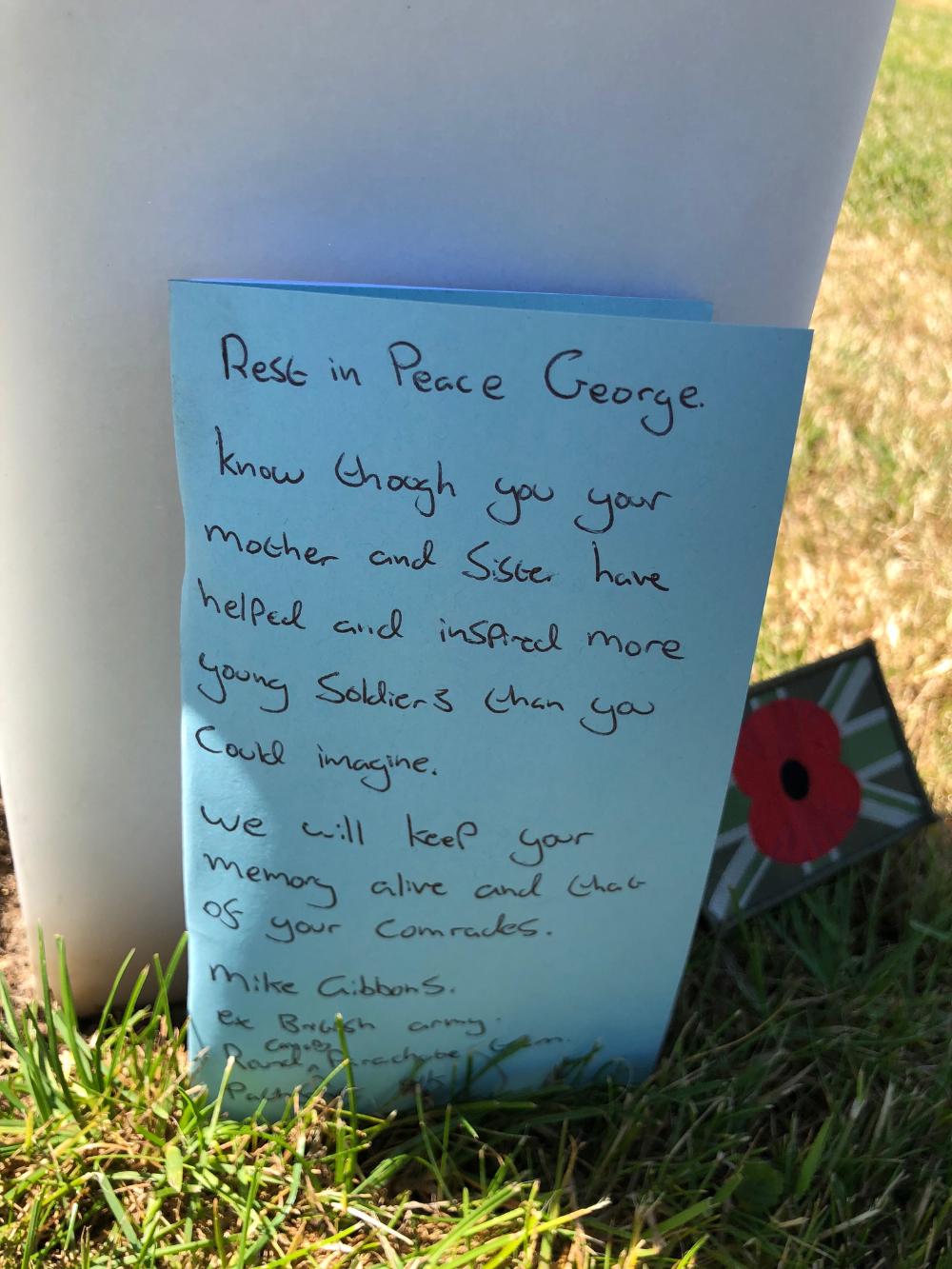 I felt I had to contact Anne and thank her and let her know how important I thought this small book was and how it had touched me and alot of my army friends I showed it to. I decided I wanted to visit George and two weeks ago I did. I wrote a few words in a booklet and gave GBT salute. I felt happy to have visited and felt I’d completed a circle I did not know existed a month ago.